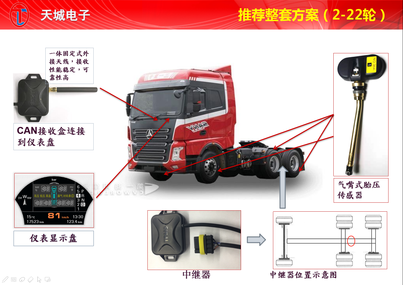 從2輪到22輪的所有輕卡,客車(chē),大巴,中巴,旅游客車(chē),重型卡車(chē),工程車(chē),礦車(chē),等TPMS無(wú)線(xiàn)胎壓監(jiān)測(cè)的解決方案。