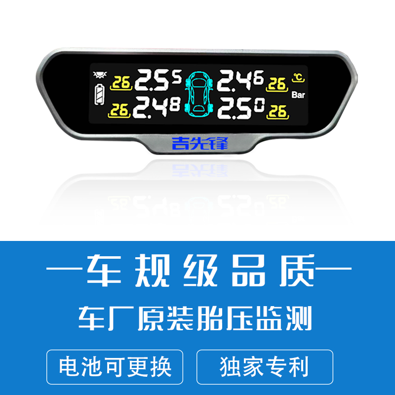 《吉先鋒》 1.都能聽得懂的會(huì)說話的胎壓檢測(cè) 2.主動(dòng)報(bào)告壓力監(jiān)測(cè)正常的胎壓監(jiān)測(cè) 3.報(bào)告左前、右前、左后、右后具體位置狀態(tài)的胎壓監(jiān)測(cè) 4.耐高溫暴曬的大彩屏太陽(yáng)能胎壓監(jiān)測(cè) 5.高精度三位數(shù)字顯示的胎壓監(jiān)測(cè) 6.四個(gè)輪胎壓力和溫度同時(shí)顯示的胎壓監(jiān)測(cè) 7.可弱光充電的太陽(yáng)能永不外接充電的胎壓監(jiān)測(cè) 8.更換傳感器可自動(dòng)學(xué)習(xí)配對(duì)的胎壓監(jiān)測(cè) 9.車規(guī)級(jí)純銅氣嘴傳感器 10.可自行更換傳感器電池延長(zhǎng)使用壽命的胎壓監(jiān)測(cè) ......